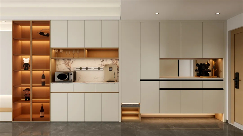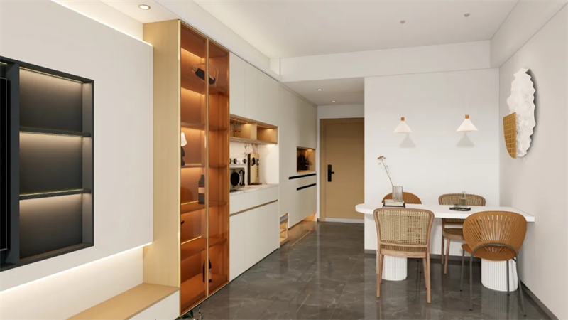 餐邊櫃與玄關櫃、電視櫃一體設計