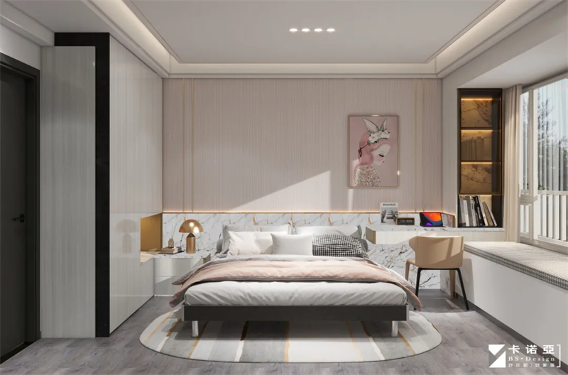 臥室的設計更注重舒適度與功能性,集睡眠、梳妝、收納於一體,步步皆優雅,打造五星級酒店般的居住體驗。