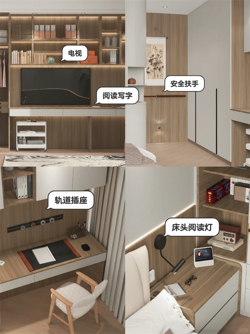 ▪️在衣櫃門和進門牆麵增加了扶手設計,老人行動有支撐更加安全便捷。