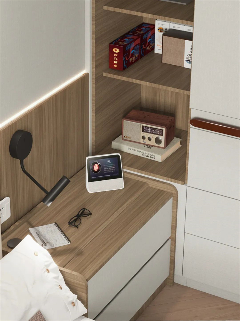 ▪️即使年輕人可能不選擇床頭櫃,父母房間裏一定要安排上,放置書、老花鏡、保溫杯等日常必需品~
