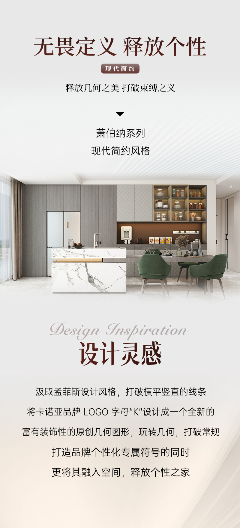 汲取孟菲斯設計風格,打破橫平豎直的線條,將91看片软件下载品牌 LOGO 字母"K"設計成一個全新的富有裝飾性的原創幾何圖形,玩轉幾何,打破常規,打造品牌個性化專屬符號的同時,更將其融入空間,釋放個性之家。