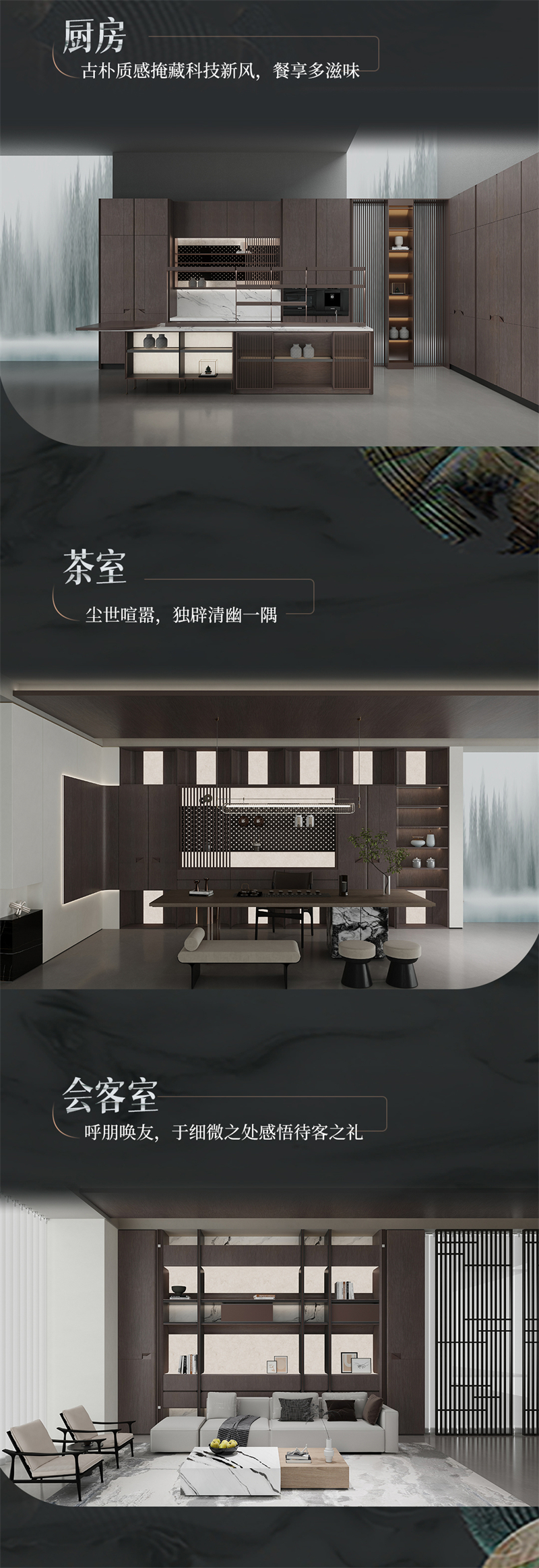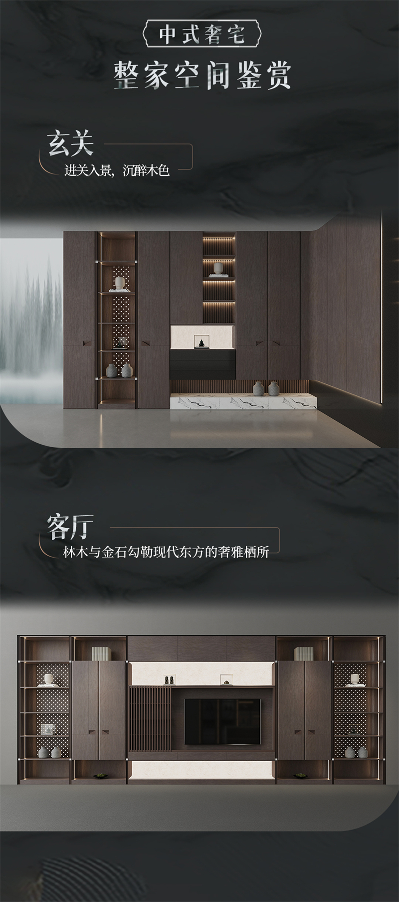 藏玉係列以“形、質、氣、韻、神”的五重境界,以小見大、步移景異,串聯式的節點打造層次遞進的空間情緒。從歸家禮儀、空間格局以及設計細節等多個維度,建構禮序雅境。