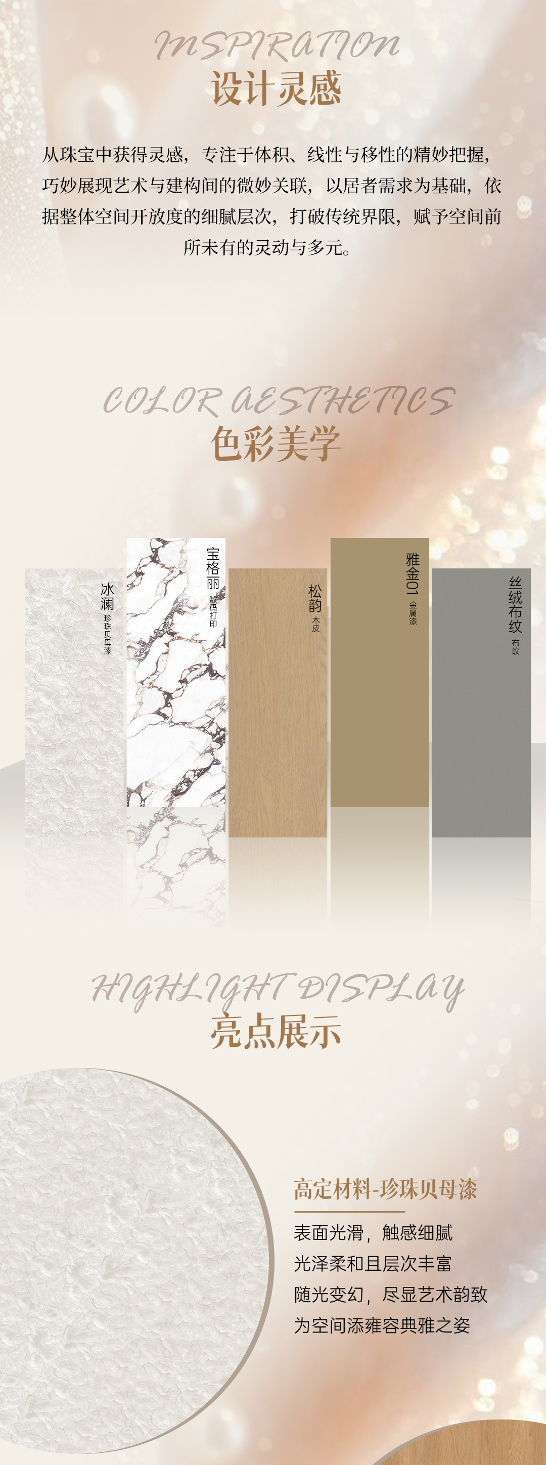 從珠寶中獲得靈感,專注於體積、線性與移性的精妙把握,巧妙展現藝術與建構間的微妙關聯,以居者需求為基礎,依據整體空間開放度的細膩層次,打破傳統界限,賦予空間前所未有的靈動與多元。