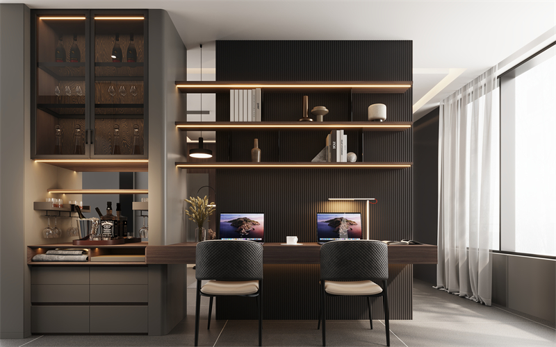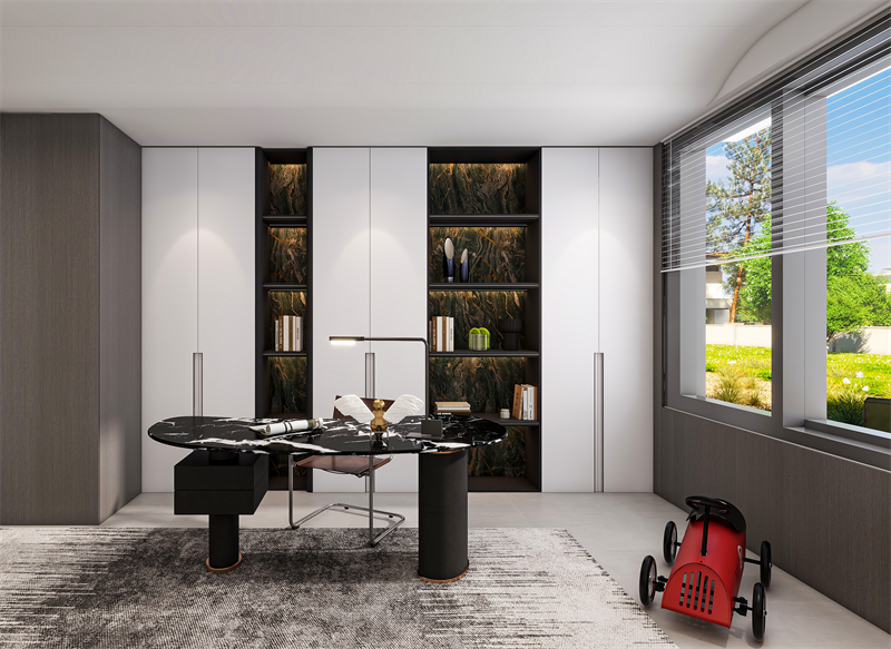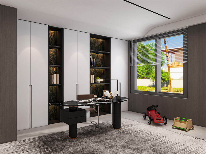 書櫃櫃門一門到頂,締造大氣流暢的學習、辦公空間。