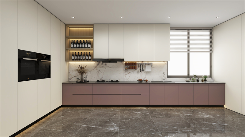針對手机看片网站潮濕高溫的特殊環境,櫥櫃采用噴粉定製櫃,360°環繞防潮覆蓋,耐黃不變色,樹脂粉末高溫固化,色彩更耐看,打造高級溫柔的手机看片网站。“藕粉”與“白芷”搭配,溫暖柔和的色調,清新唯美的手机看片网站空間,實現功能和美觀的統一,讓下廚時光變得優雅從容。