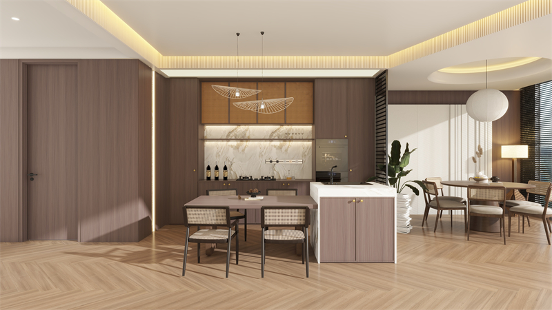 藤憶係列,自然的木紋肌理,觀感溫暖而質樸,洋溢著電影感的鏡頭美,與複古的柔和韻味交織,靜謐中透露出歲月的沉澱之美,每一寸空間都仿佛在訴說著歲月靜好,成就跨越時空的經典,感受時間積澱的質感。