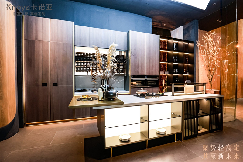 首先,品質上,講究優質選材和精工細作。優質選材上,大量使用高端基材和麵材,包括康醛板、淨醛抗菌板等ENF等級環保材料,還有天然胡桃木皮、數碼打印石紋、珍珠貝母漆、噴粉門板等,這些材質不僅提升了產品的質感,還賦予了家居空間獨特的自然美學。精工細作上,通過精工車間、油漆車間和高定工藝,大力提升生產工藝與品質,打造精致的細節,滿足輕高定消費市場核心需求。