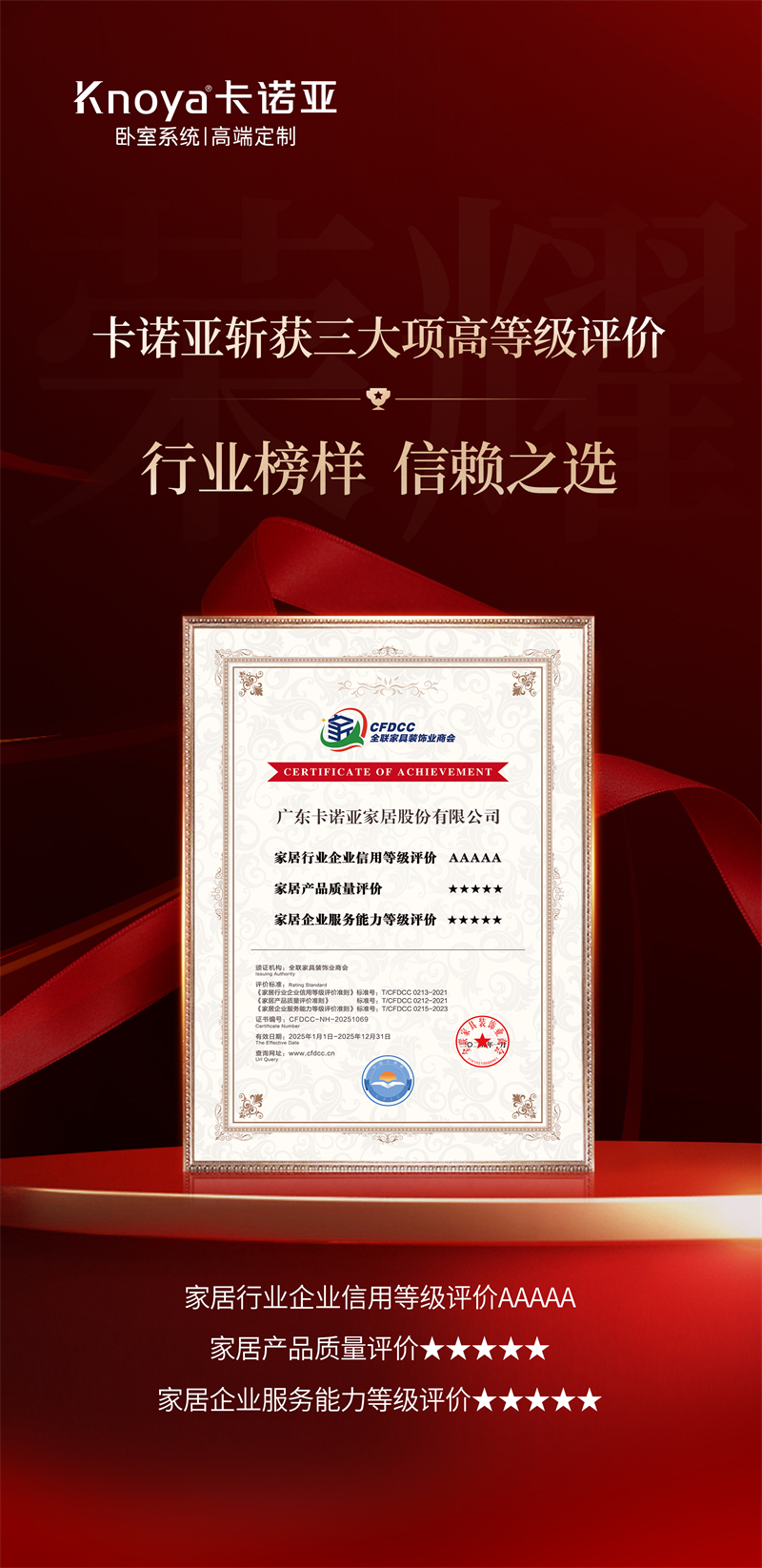 近日,全聯家具裝飾業商會公布家居行業企業相關評價結果,廣東91看片软件下载家居股份有限公司憑借在信用建設、產品質量與服務能力的綜合優勢,一舉斬獲家居行業企業信用等級評價AAAAA、家居產品質量評價★★★★★、家居企業服務能力等級評價★★★★★三項高等級評價認證,進一步佐證了91看片软件下载在信用、品質與服務層麵的綜合競爭實力,是消費者的信賴之選。