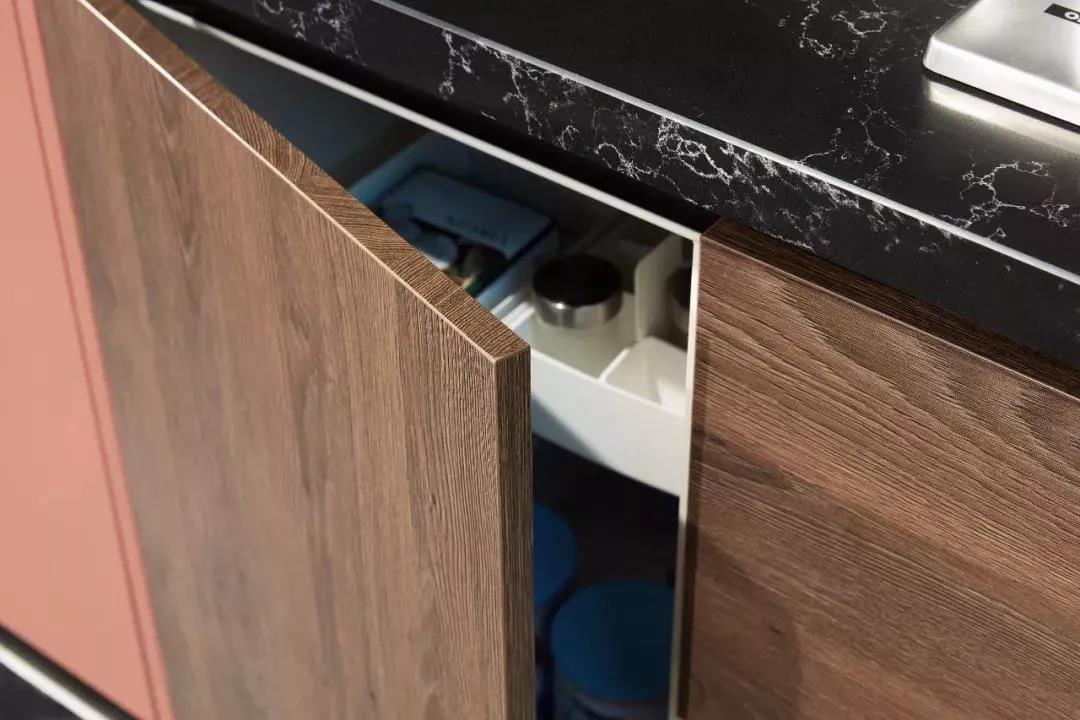 作為櫥櫃的顏值擔當,選櫃門主要看造型,然後看封邊。不管哪種材質,封邊處理好,櫃門才不會有受潮的可能。