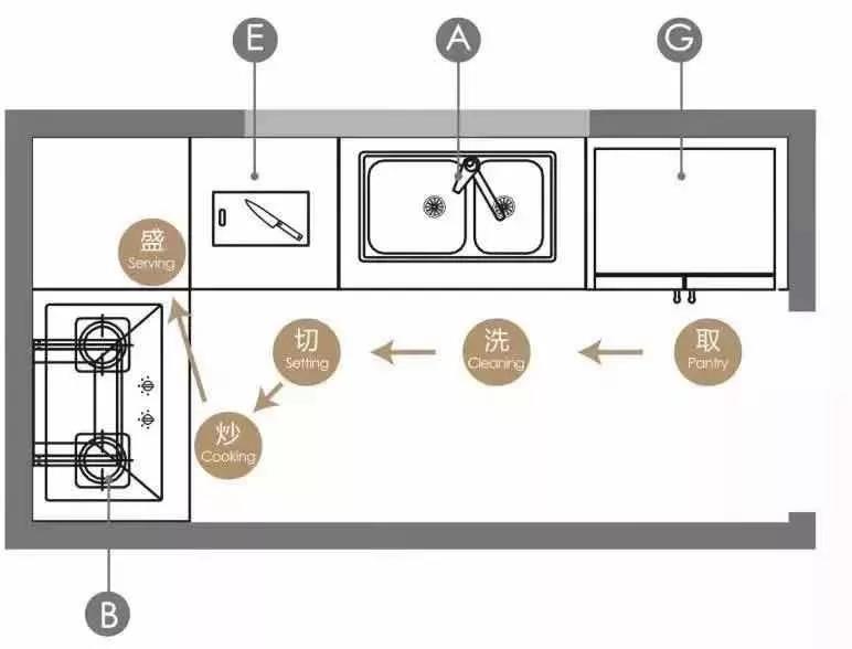 想要下廚不累,手机看片网站動線和布局一定要合理。最常見的櫥櫃布局有一字型、二字型、L型、U型和中島型5種,要根據手机看片网站麵積大小和管道位置選擇,不管選哪種,都要保證洗、切、炒的動線最短。
