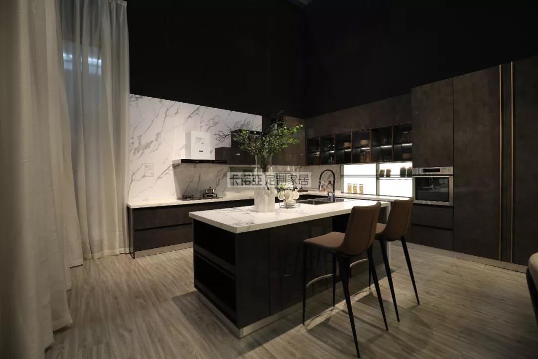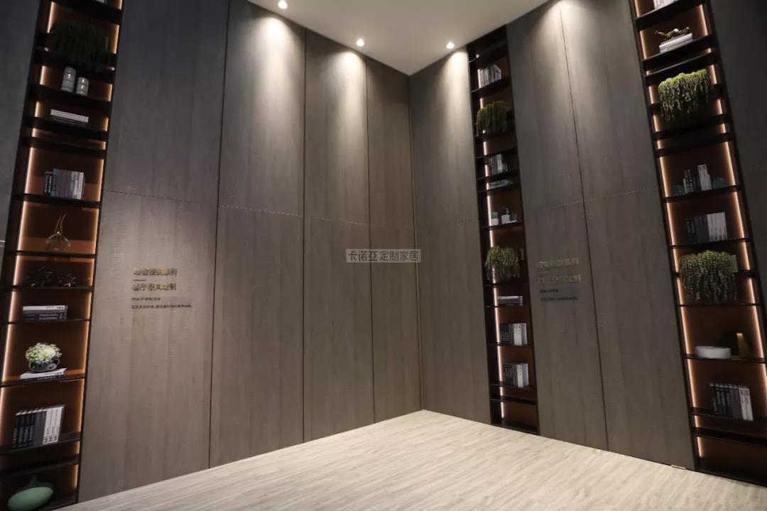 和風物語係列升級版,傳承現代簡約風格,追求功能至上,顏值同樣驚豔示人,使用高端的深色木紋,搭配高級灰(仿古)、灰白,加上行業獨創的極簡窄邊框門板造型,顛覆傳統現代簡約風格單調的直線條和單一的色彩應用。現場很多客商看了和風物語全屋定製產品之後,一致認為無論是整體空間,還是精致細節,都做到了無懈可擊,市場潛力巨大。